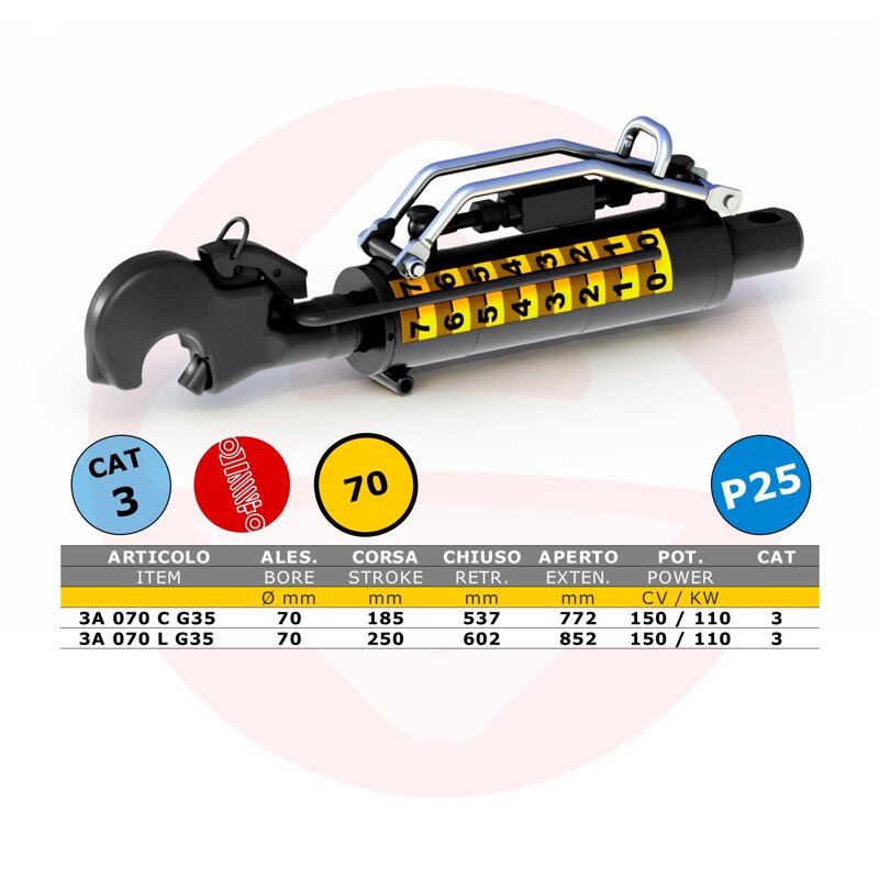 3A 070 - G35 | Terzo Punto Idraulico Ammortizzato C70 per Forcella P25 e Gancio Rapido Cat.3 150CV - 3A 070 C G35 Corto 537...722 008402